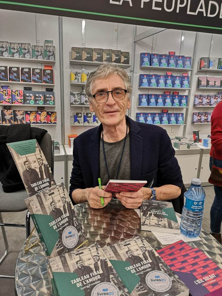 Et, comme les hasards n’existent pas, j’ai rencontré un autre grand écrivain québécois, que vous connaissez sûrement, Larry Tremblay, dramaturge, metteur en scène, poète. Il m’a signé son livre et je me suis promis de faire une recherche approfondie sur ses activités. Pour que la joie continue ! Merci, Larry !